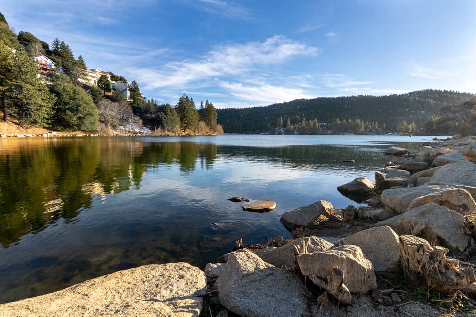Crestline, California, is the closest mountain resort town to the major cities of Southern California and is the number one day-drive mountain destination. Those who would like to stay for more than a day can find excellent accommodations at cabins that are offered throughout the town. At scenic Lake Gregory, visitors may enjoy beach sunbathing and waterslides, fishing, rowboat rentals, hiking trails, mountain biking, and nearby Skypark a/k/a Santa’s Village.